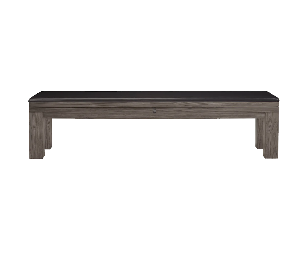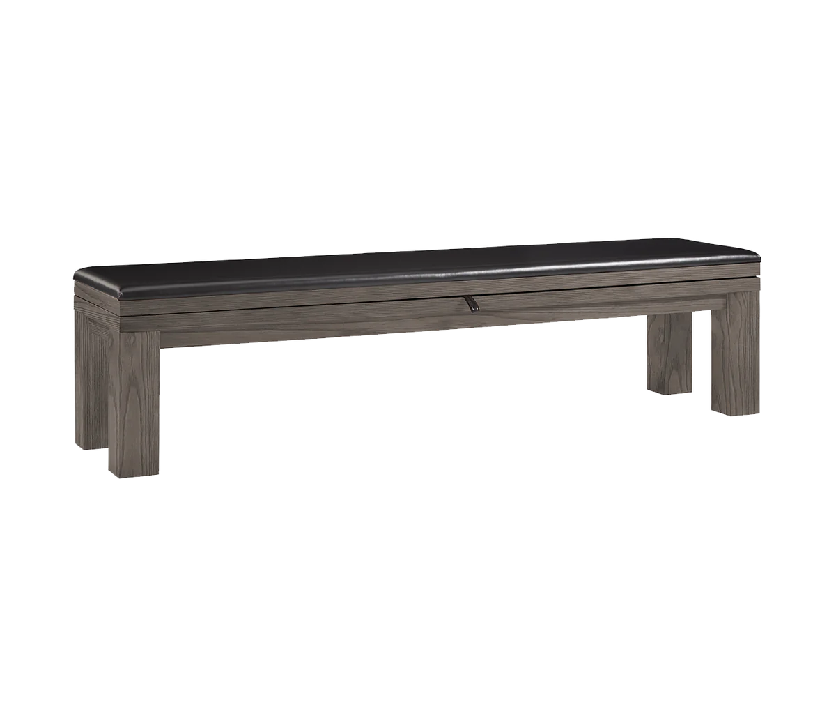 This coordinating bench converts Alta pool tables to a dining table in seconds. Stylish yet practical, this bench sits at an ergonomic height to transform your game table into a flexible, versatile piece of furniture. It features an internal hidden storage compartment under the seat to store multiple accessories. Dimensions: 75”L x 18”D x 18”H, 122.36 lbs.