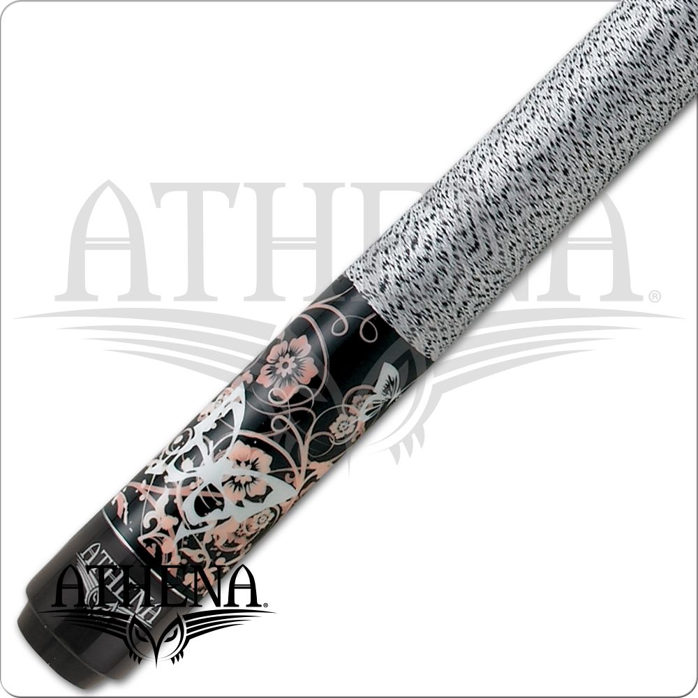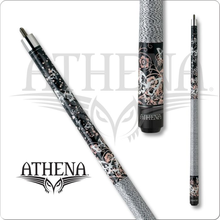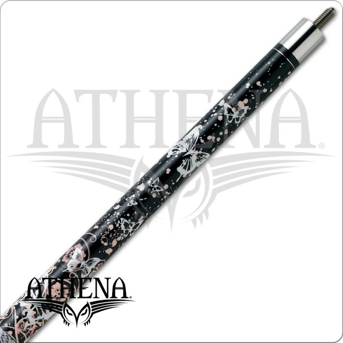 Butt Sleeve : Black background with a splattered pink design and white butterflies