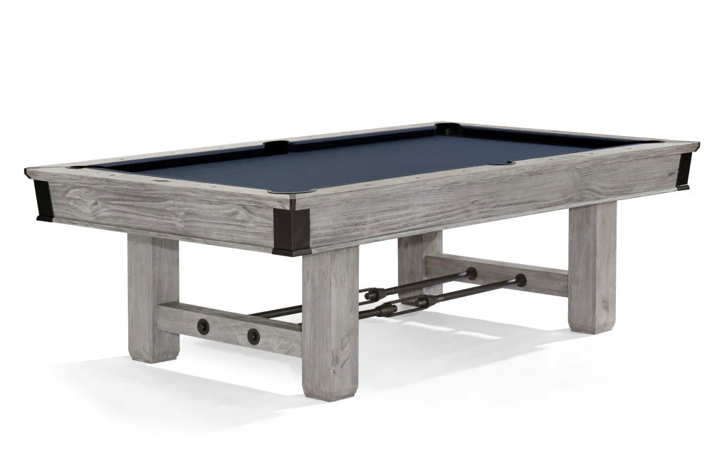 Nothing says "rack 'em up" like the rustic-meets-industrial charm of the Canton pool table. With its artful hand hammered sights and aged metal turnbuckle stretchers, corners and hardware, this table is the perfect marriage of proud craftsmanship and industrial design. Available in 7' and 8'.