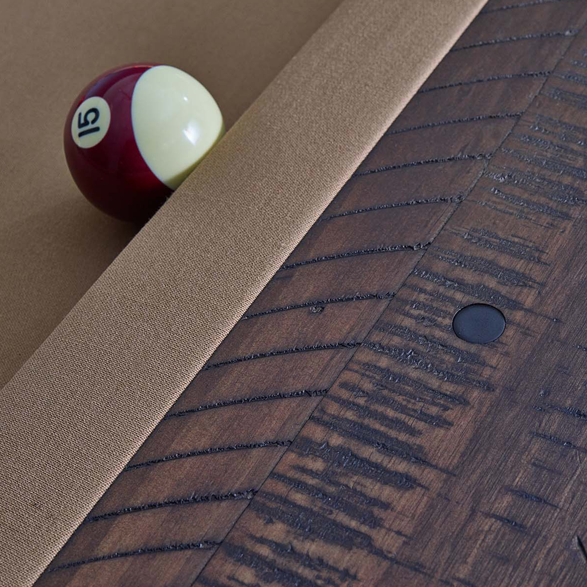 The Farmhouse 8ft is a contemporary county style table with a lavish Cappuccino finish. This billiard table features black round metal rail sights, modern farmhouse design, and internal drop pockets.
