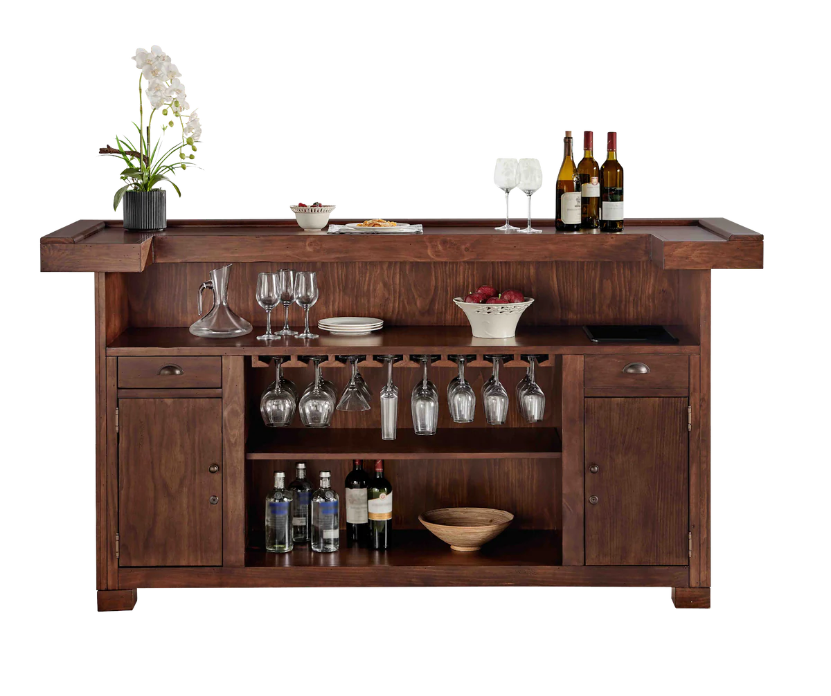 The rustic Savannah Bar combines old-world style with the new-world features. Finished in a Sable brown it features a removable ice bucket, stemware holders, plenty of storage space, locking liquor cabinets, and easy-glide storage drawers.