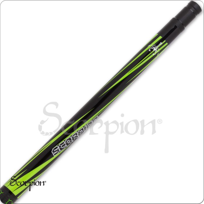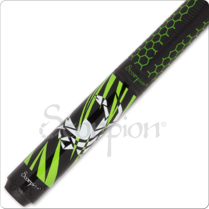 Butt Sleeve : Black with lime green slanted points, with a white Scorpion